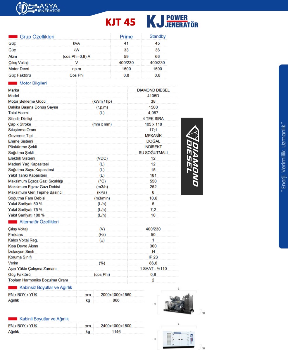 KJ POWER KJT 45 KVA OTOMATİK KABİNLİ DİZEL JENERATÖR